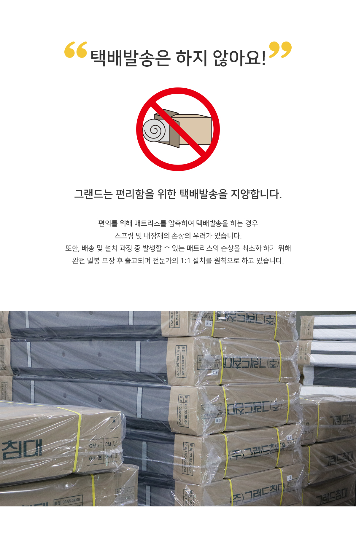 - 배송 전 설치 공간을 확보해주세요. 기존 사용중이던 매트리스의 이동 및 폐기 서비스는 불가능합니다.